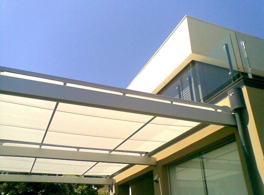 The Climara W7 Conservatory Awnings are installed over glass. Perfect fabric tension is achieved by gas pressure springs in the guide rails.