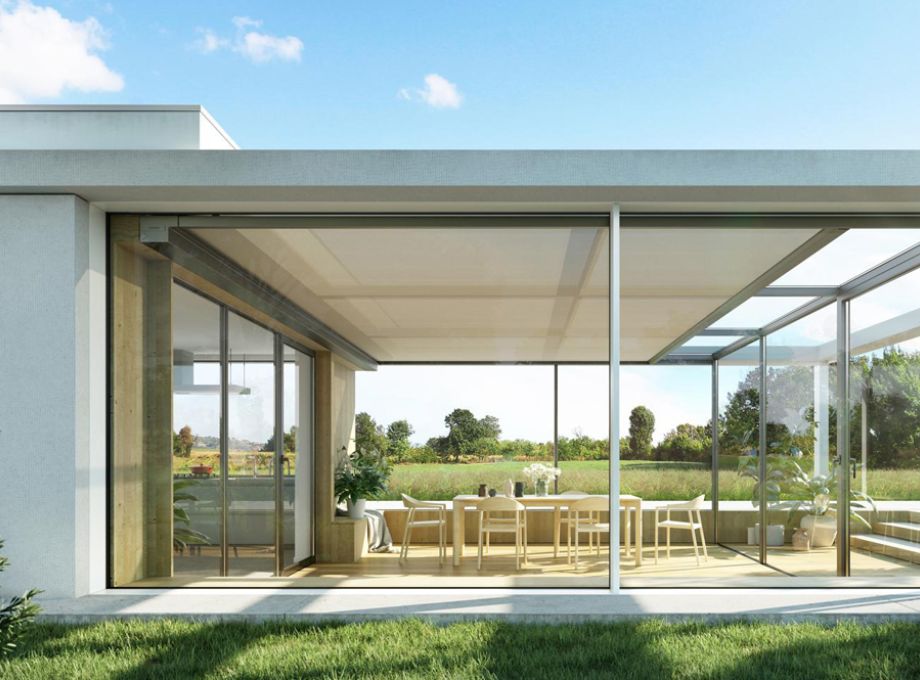 The Climara W20 Conservatory Awning from Warema features a newly designed slim cassette to protect the fabric when not in use and utilizes the patented new Warema Secudrive® guidance system.