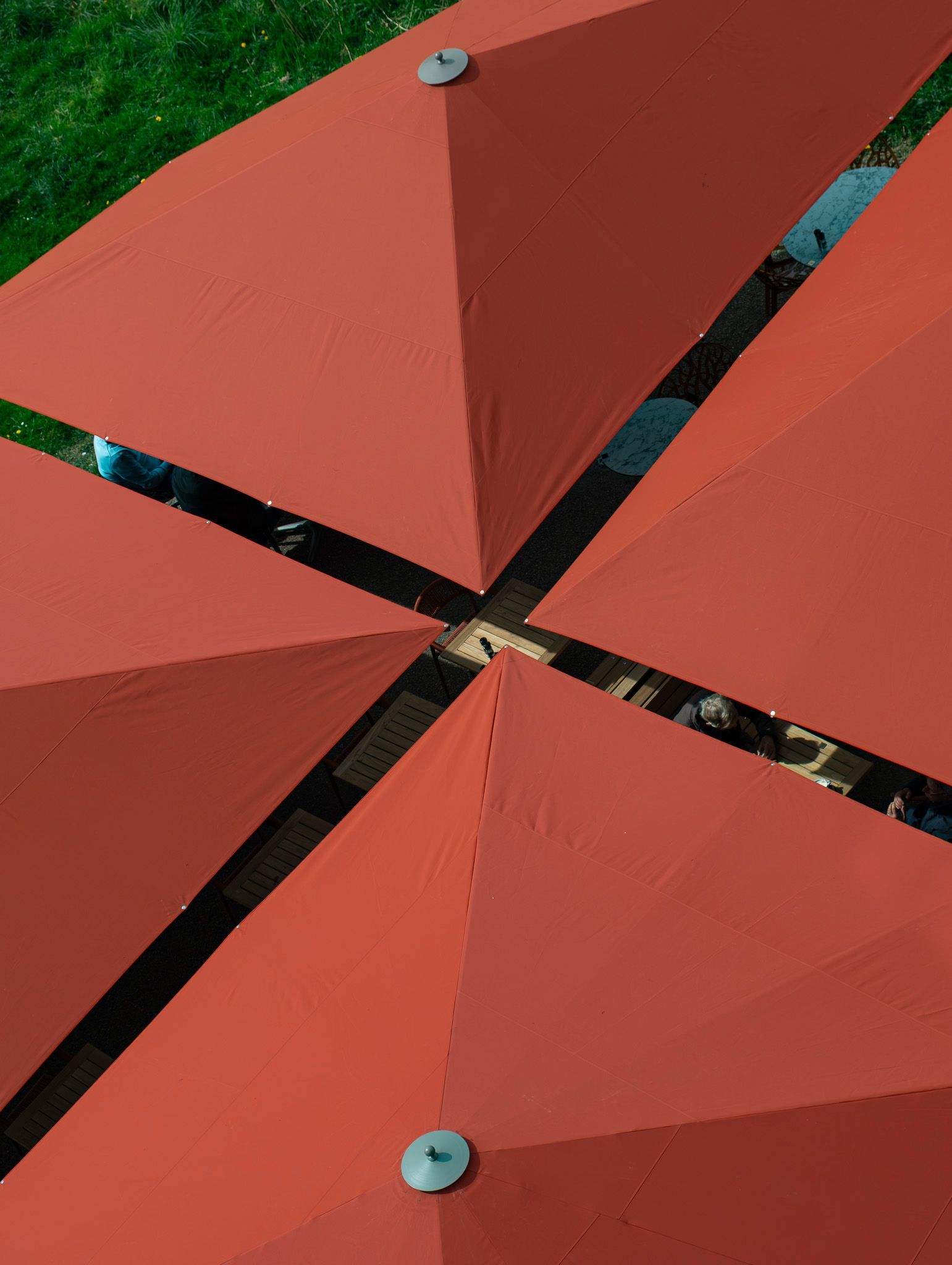 Canopies are available in more than 120 colours. Frames are available in more than 200 colours. Colours and additional manufacturing (valances, wind hood, etc.) options can be combined to get a unique sunshade.
