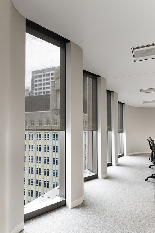 Sun shading was a critical part of the design strategy, balancing occupant comfort, energy efficiency and daylight access. Skinner outlines the approach: “The blind system in the south tower is a roller blind system with a very highly reflective fabric in order to manage the solar loads on the facade.