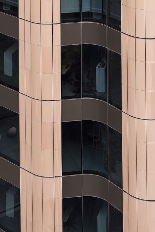 The corners of the building posed unique structural and facade challenges, requiring careful engineering to balance the dual-orientation facades.