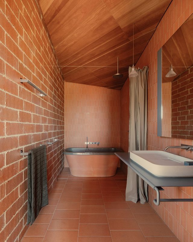 Inside, the use of materials continues this theme. Terracotta tiles for floors and walls were sourced from the Manetti family works in Florence, creating a connection between interior and exterior.