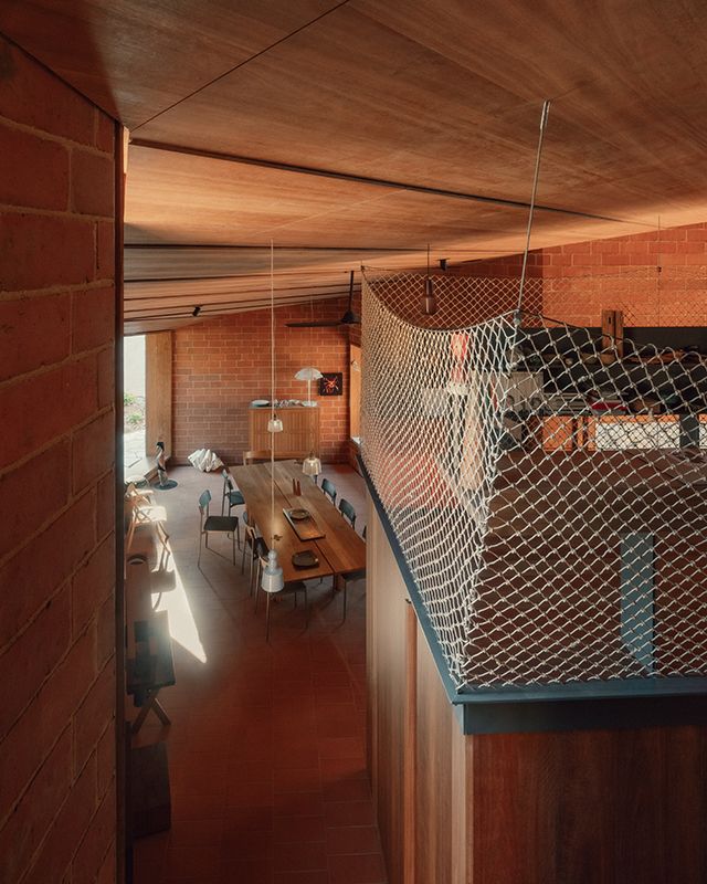 The choice of terracotta bricks on the exterior reflects the natural colours of the cliffs, with each piece bearing its own distinct texture and glaze.
