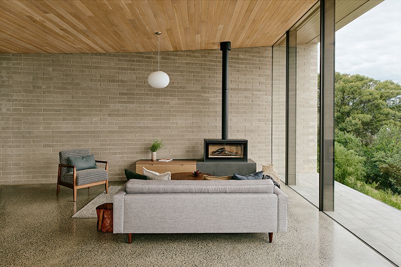 The design engages with the landscape through a harmonious interplay of enclosure and openness. A gently curving roofline descends from a deep recess in the otherwise closed façade, flowing through the interior before rising again to reveal stunning views of the river and the majestic Timtumili Minanya (Mount Wellington).