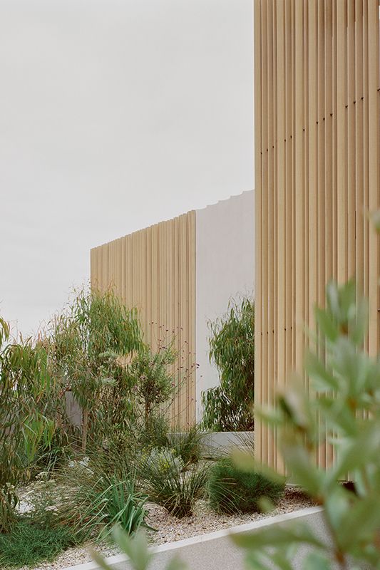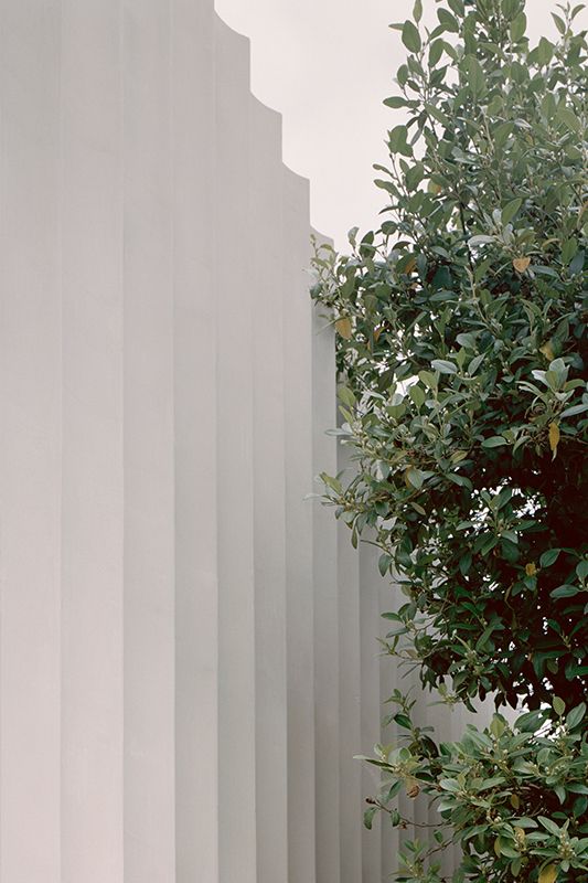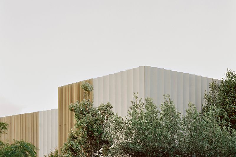 "We were interested in exploring this idea of shadow play on the facade," Lovell says. "When it's not receiving light, it's really flat and monolithic, but then when light starts to pass over it, it really becomes quite corrugated and stripey. I think that was really important for us but also the client and the sense of what they wanted the building to look like.”