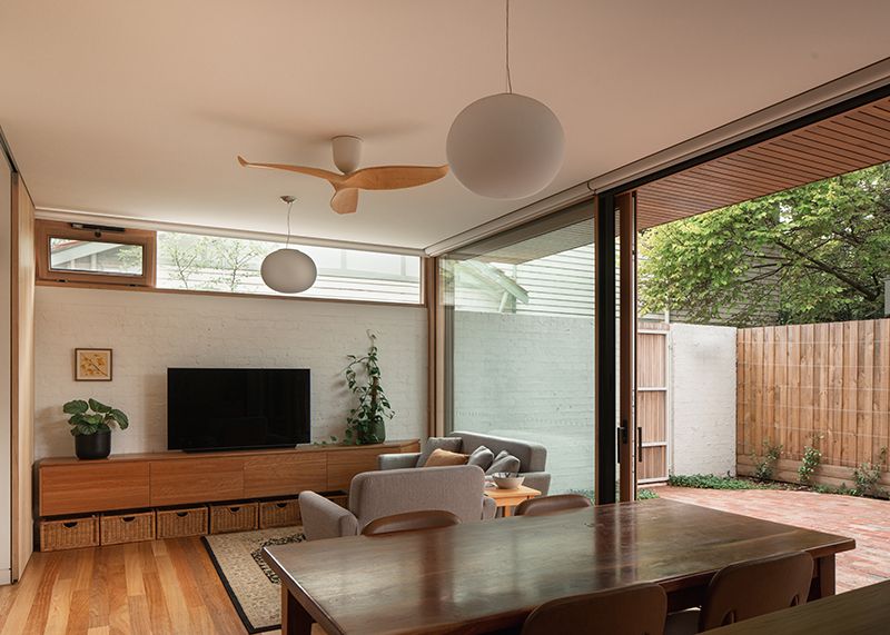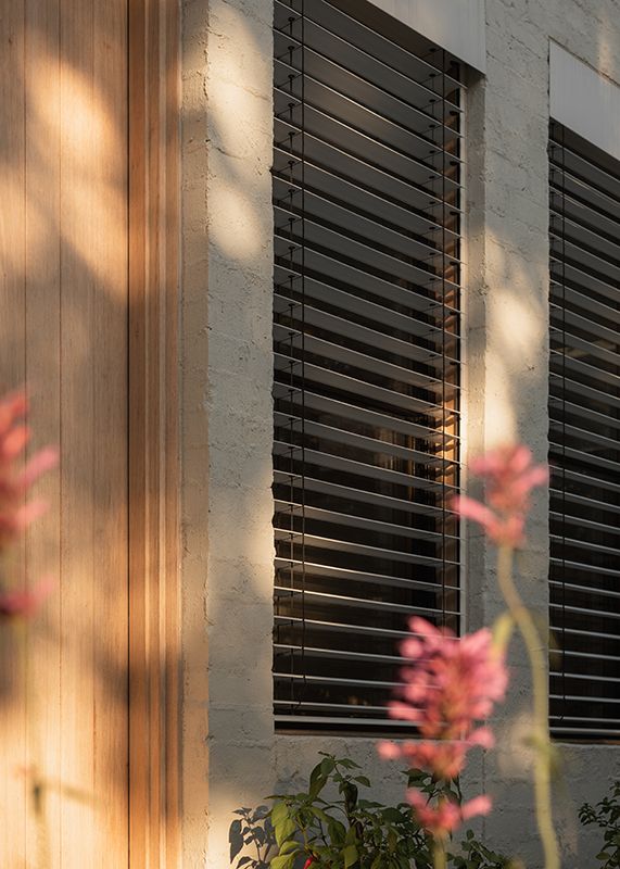 Beyond comfort, the blinds bring a subtle dynamism to the home’s street-facing facade. “They were essential in enabling us to provide Maddy the interaction with the street that she wanted, while still being able to deliver the passive solar design that we and Maddy valued."