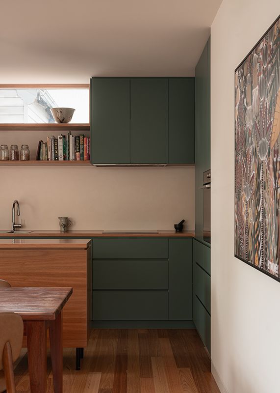 “The timber floors and timber cabinetry are really nice natural materials against that quite hard brick,” Callery says. “They’re very tactile and reinforce that connection with nature that we have with the courtyard. Our approach is very much wanting materials to be of this place.”