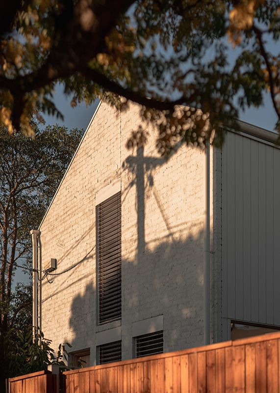 A key part of the design was managing the strong afternoon sun from the west. Maddy wanted upstairs windows facing the street so she could stay visually connected to the neighbourhood, but that orientation came with a risk of overheating in summer.
