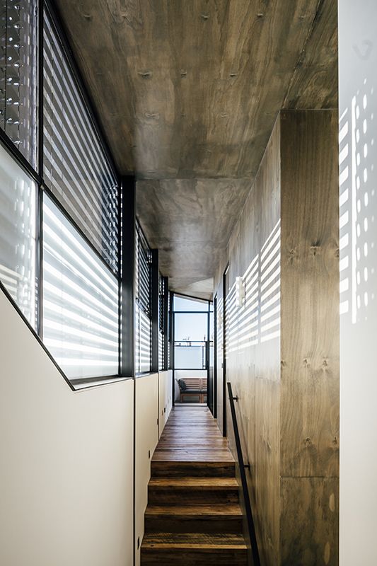 “Recycled timber beams were also integrated into the structure of the building to reflect the client's passion for timber and connection to the timber industry,” says Murfett.