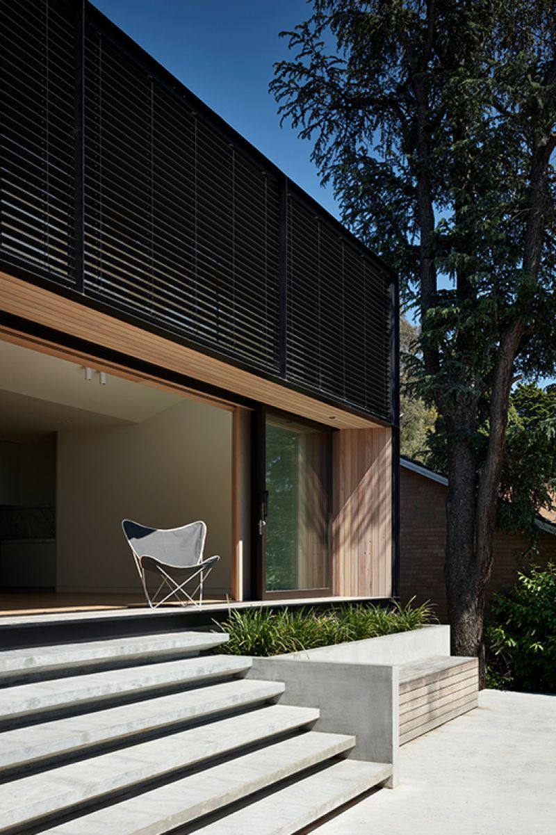 "We saw this as an opportunity to reimagine the existing north-facing facade and extend it to capture views over the Yarra. We incorporated high windows with integrated louvres to bring natural light deep into the house," explains Michael Ong, founder and principal architect of Michael Ong Design Office.