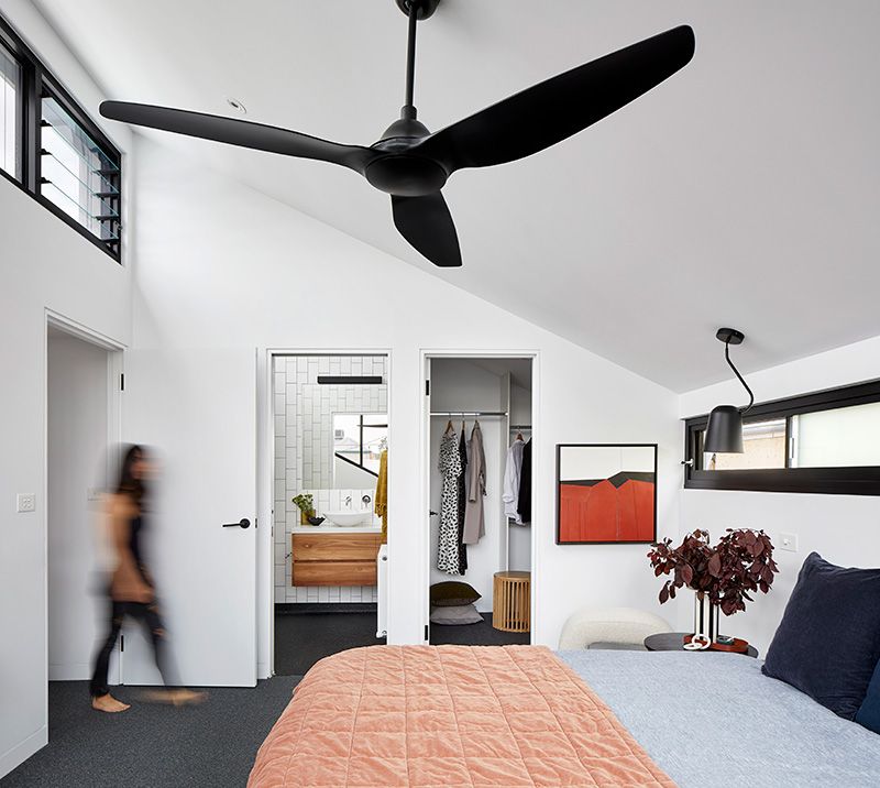 The rear addition needed to be two storey to house a bedroom with ensuite and walk-in robe upstairs, and an open plan living room on the ground floor.